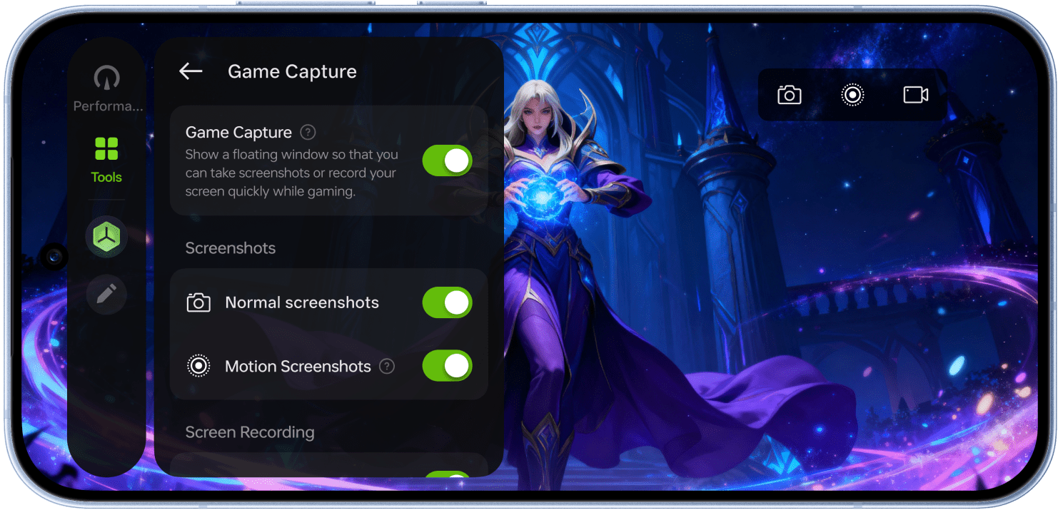 احفظ كل انتصار؛ بنقرة واحدة فقط يمكنك تسجيل لحظاتك الحاسمة بدقة HD فائقة الوضوح. تُحفظ اللحظات فوراً، لتكون جاهزة للمشاهدة والمشاركة من جديد.
