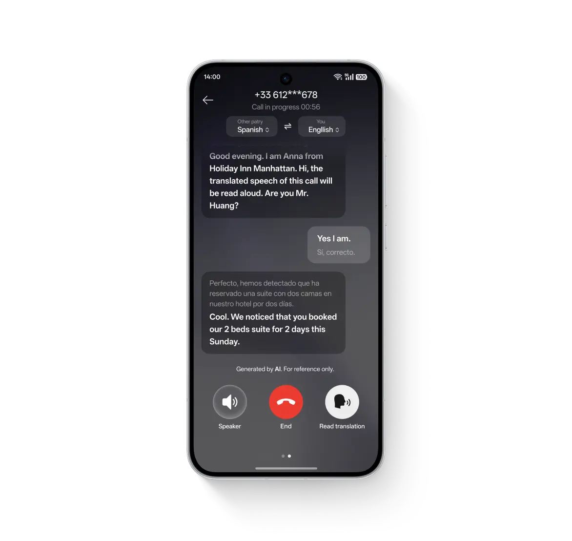 ابقَ على تواصل أينما ذهبت. يوفّر مترجم المكالمات بالذكاء الاصطناعي ترجمة فورية أثناء المكالمات، ليصبح الحجز، التنسيق، وتأكيد الخطط أمرًا سهلًا وسلسًا. بلا حواجز، فقط تواصل.