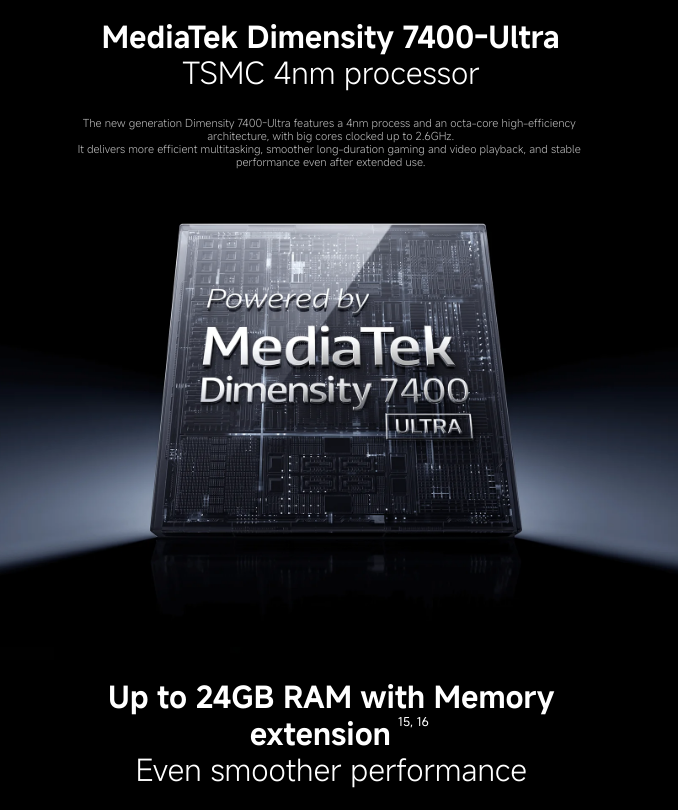 المعالج: Mediatek Dimensity 7400 Ultra (4 نانومتر) |