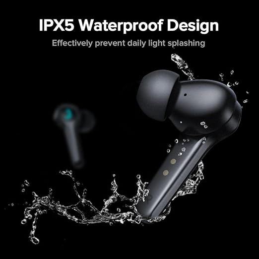 سماعات اذن لاسلكية حقيقية JR-TP1 مع علبة شحن من جوي روم – اسود